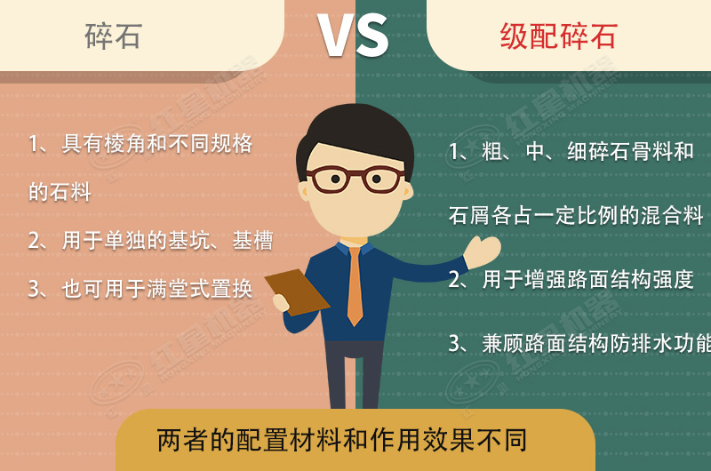 碎石是在礦山通過開采、破碎和篩分后生產(chǎn)的具有棱角和不同粒徑規(guī)格的石料;級配碎石是不同規(guī)格集料按一定比例混合,形成粗、中、細碎石集料和石屑各占一定比例的混合料。
